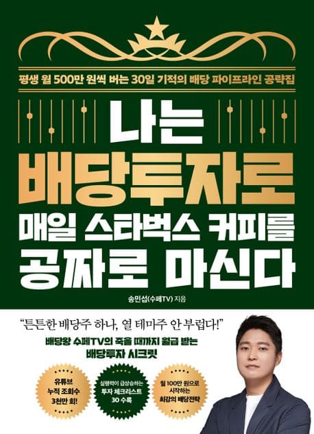 배당투자는 주가의 하락에도 크게 영향을 받지 않고 심리적으로 훨씬 편하게 느껴질 수 있지만, 누군가는 매년 배당금을 차곡차곡 쌓는 반면 누군가는 배당금이 줄고 심지어 자산마저 마이너스가 되는 속상한 경험을 하는 것이 배당투자자들의 대조적인 현실이다. 2019년부터 4년여간 유튜브 채널 ‘수페TV’를 운영해 온 송민섭은 “배당을 많이 준다는 달콤한 말에 속지 말고, 어떤 것을 보고 투자해야 하는지 정확히 알아야 한다”라고 강조한다. 『나는 배당투자로 매일 스타벅스 커피를 공짜로 마신다』는 주식에 관심은 있었는데 시작이 어렵거나 손실이 두려워서 투자하지 못했던 사람들, 수익에 영향을 미치는 투자 정보를 잘 판별해내고 싶은 사람들, 자신만의 투자 아이덴티티를 정립해 주도적으로 매수·매도를 하고 싶은 초보 투자자를 위해 쓰였다. 지금까지 ‘수페TV’에서 공개했던 투자 콘텐츠 중 구독자들이 특히 열광하고 도움 되었다고 응답받은 내용을 모아 최신 정보로 업데이트하고, 그간 풀어내지 못했던 투자의 핵심 철칙과 성공 비법을 진솔히 담아냈다. 매달 커피값이라도 소소하게 벌고 싶다면, 은퇴 후에도 꾸준하게 들어올 든든한 파이프라인을 갖고 싶다면, 이 책을 통해 기초적인 내용부터 실전 응용 전략, 꼼꼼하고 세심한 실천법까지 익혀 투자 의지를 꾸준히 북돋는 새로운 투자 인생을 시작할 수 있을 것이다.
