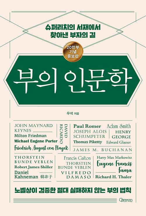 지금까지 인문학을 ‘투자’라는 렌즈를 통해 바라본 책은 없었다. 인문학을 이토록 쉽고 재미있게, 투자의 눈을 뜨게 하는 도구로 사용할 수 있다는 것만으로도 흥미롭다. 저자는 자기 안에서 소화된 인문학과 지금의 우리 현실을 씨실과 날실로 엮어가며 투자에 대한 거대한 태피스트리를 엮어간다. 1장은 우리가 왜 책을 읽어야 하는지, 철학이 우리의 생각과 삶의 모습을 어떻게 변화시키는지 일상의 언어로 설명하며 철학이 어떻게 투자의 무기가 되는지 알려준다. 2장에서는 정치나 정책 안에서 경제와 경기가 움직이는 원리가 무엇인지, 그것이 우리의 삶을 어떻게 변화시키는지 자세히 설명하며 사람들이 왜 ‘노예의 삶’을 선택하는지 이야기한다. 3장에서는 부동산 가격이 움직이는 메커니즘을 통해 오늘 우리에게 필요한 현실적인 부동산 투자법은 무엇인지 제안하고, 4장에서는 천재 경제학자들의 이론에서 도출해 낸 필승 주식 투자법을 소개해 개인 투자가들이 실수와 실패를 줄일 수 있도록 응원한다. 5장에서는 인문학을 기반으로 돈의 흐름과 부의 작동원리를 읽는 법을 밝힘으로써 투자에 대한 고정관념과 오해를 깨치고 하고, 6장에서는 인간의 본성과 자본주의의 원리를 간파하고 성공 투자의 청사진을 그릴 수 있게 이끌어준다. 그동안 내 전망이 들어맞은 것은 내게 신기가 있어서가 아니다. 나의 전망이 적중률이 높은 것은 그것이 단지 내 개인의 경험과 생각에서 나온 것이 아니라 거인들의 통찰력을 빌렸기 때문이다. 나의 거인은 역사 속에 살아 있는 경제학 거장들이다. 나는 이 책을 통해서 내가 인문학을 공부하면서 알게 된 거인들의 투자 통찰을 아주 알기 쉽게 알려주려 한다. 이론과 메시지는 노벨 경제학상을 수상한 경제학자들을 중심으로 소개하고 있다. 왜냐하면 경제학 이론은 너무나도 다양하고 심지어는 상반된 이론을 주장하는 경제학자도 많기 때문이다. 노벨 경제학상 수상자들의 이론은 어쨌거나 까다로운 검증을 거친 것이라고 할 수 있고, 다른 것보다 신뢰할 수 있다고 생각하기 때문이다.