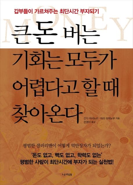 ‘돈도 없고, 빽도 없고, 학력도 없는’ 평범한 사람이 최단시간에 부자가 되는 실천법! 두 저자도 우리처럼 언젠가는 자신의 회사를 갖고 싶었고 언젠가는 반드시 성공하고 싶었던 평범한 샐러리맨이었다. 그리고 3년 후 간다 마사노리는 해고된 MBA출신 공무원에서 일본의 유명컨설턴트이자 7권의 베스트셀러 작가가 되었고, 히라 히데노부는 고졸출신 현장감독에서 건축회사를 설립, 최단시간에 성공한 입지전적인 인물이 되었다. 한마디로 모두가 부러워하는 성공자요 억만장자다. 이 책은 그들이 어떻게 해서 최단기간에 부자가 되었는가를 말해주는 생생한 경험담이면서, 책 내용대로 실천하면 곧바로 성공할 수 있는 실천서이기도 하다. 거기에다 두 저자는 이 책을 쓰기로 결심한 이후로 직장생활을 청산하고 창업에 성공한 많은 사람들을 직접 만나 조사를 벌였다. 거기에서 창업에 성공하는 방법과 실패했던 이유 등을 연구해 평범한 경험밖에는 없는 사람들이 최단기간에 돈을 벌고 성공하기 위해서는 무엇이 가장 필요한지를 밝혀냈다. 이 책은 바로 평범한 샐러리맨에서 억만장자가 된 두 저자가 평범한 사람에게 선물하는 부와 성공을 위한 실천법이다! 나도 회사를 차리면 반드시 성공할 수 있겠다는 믿음이 절로 생기는 책! 성공한 사람들은 모두 정신적인 상처를 지니고 있었다. 저자들도 다니던 회사에서 해고되었고 냉혹한 현실 앞에서 나락으로 떨어지는 것처럼 막막할 때도 있었다. 그러나 그들은 어려움이 크면 클수록 성공도 크고 큰돈 버는 기회도 반드시 숨어 있다는 사실을 알고 있었다. 그리고 그 기회를 이용해 절호의 인생역전을 이룬 것이다. 하늘이 내리는 큰 부자는, 모두가 힘들다고 할 때 나온다는 말이 있다. 이 책은 모두가 힘들다고 하는 지금 이 때에 큰돈 버는 기회포착법과 기회활용법, 그리고 그 기회를 큰돈으로 바꾸는 기술을 자세히 가르쳐주고 있다. 이 책이 말하는 성공의 열쇠는 단순하고 명쾌하다. 왜 자신이 이 일을 해야만 하는가 하는 확실한 ‘동기’와 지금까지의 경험을 살려 시장가치를 발견하는 기술, 그리고 그 경험을 파는 ‘영업력’, 즉 자신을 파는 기술에 있다고 말한다. 당신이 현재의 회사에서 승진도 하고 몸값도 올리고 싶을 때, 또는 회사를 그만두고 창업을 하고자 할 때도 동기, 집객력, 세일즈력만 있으면 얼마든지 성공할 수 있는 것이다. 이 책은 그러한 기술을 가르쳐주고 당신 안에 숨겨진 엄청난 부를 발견하기 위한 책이다.