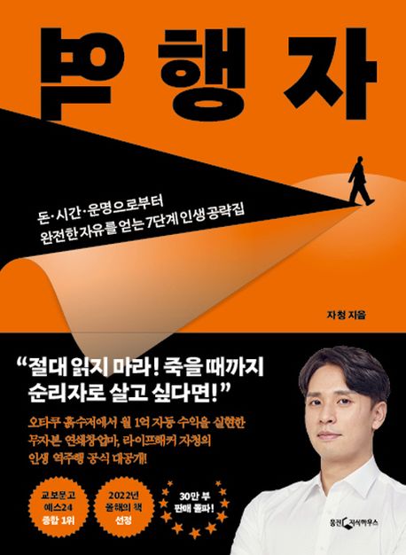 농장에 있는 닭을 보라. 이들에게 자유의지가 있다고 말할 수 있을까? 이 닭은 평생 한정된 울타리 안에서 살며, 유전자 명령에 따라 행동한다. 짝짓기를 하고, 알을 낳고, 다른 닭과 싸우기도 한다. 닭은 자신에게 ‘자유’가 있다고 생각할 것이다. 하지만 인간의 관점에서 이 닭의 운명은 태어나면서부터 정해져 있다. 인간의 삶도 크게 다르지 않다. 자신에게 ‘자유의지’가 있다고 착각하지만, 모두 망상이다. 인간도 유전자, 무의식, 자의식의 울타리에 갇혀 평범하게 살다가 죽는다. 그것이 바로 ‘순리자’의 길이다. 그러나 5퍼센트의 인간은 다르다. 이들은 타고난 유전자의 본성을 역행해 돈, 시간, 운명으로부터 완전한 자유를 얻는다. 본성을 거슬러 행복을 쟁취하는 이들이 바로 ‘역행자’다. 『역행자』는 오타쿠 흙수저에서 월 1억 자동 수익을 실현한 라이프해커 자청의 인생 역주행 공식을 담은 책이다. 자청은 인생은 마치 게임과도 같아서, 인생 공략집만 있다면 유전자, 무의식, 자의식의 울타리를 끊어내고 누구나 인생 역행의 기회를 쟁취할 수 있다고 말한다. 자청은 ‘자수성가 청년’의 줄임말로, 무자본 창업을 통해 30대 초반 월 1억씩 버는 ‘자동화 수익’을 만들었다. 하지만 스무 살의 자청 역시 순리자에 불과했다. 그의 외모, 돈, 공부는 모두 최하위였고, 평생 반월공단에 취직해 월급 200만 원을 받으며 원룸에서 게임만 하며 사는 게 소원이었다. 그러나 스무 살 무렵, ‘인생에도 게임처럼 공략집이 있다’는 사실을 깨닫고 삶이 180도 바뀌기 시작한다. 200여 권의 책을 독파하며 얻은 인생의 치트키들을 활용해 창업에 연이어 성공했고, 10년 만에 경제적 자유를 이뤘다. 이 과정에서 수많은 시행착오를 겪으며 자신만의 ‘역행자 7단계’ 이론을 완성시켰다. 『역행자』에는 저자가 10년 동안의 시행착오 끝에 찾아낸 ‘역행자 7단계’ 모델이 고스란히 담겨 있다. 유전자, 무의식, 자의식의 울타리를 끊어낼 강력한 ‘역행자 7단계’라는 무기만 있다면, 직장이든 백수든 열아홉이든 쉰이든 그 누구라도 경제적 자유를 누리고 행복한 삶을 살 수 있다. 이 책은 ‘돈 버는 법’에 대한 이론뿐 아니라 구체적인 방법들을 모두 소개한다. 책에는 “자의식 해체의 3가지 단계”, “정체성 소프트웨어를 설치하기”, “유전자 오작동을 이기는 역행자의 사고방식”, “뇌 최적화와 뇌 자동화”, “기버 이론, 확률 게임, 타이탄의 도구, 메타인지 등의 개념이 정리된 역행자의 지식”, “돈 버는 근본 원리”, “경제적 자유를 얻는 구체적 루트”, “나를 역행자로 만들어준 책 리스트”, “곧바로 돈 버는 무자본 창업 아이템”, “인생 역행한 독자 후기” 등의 내용으로 빼곡히 채웠다.