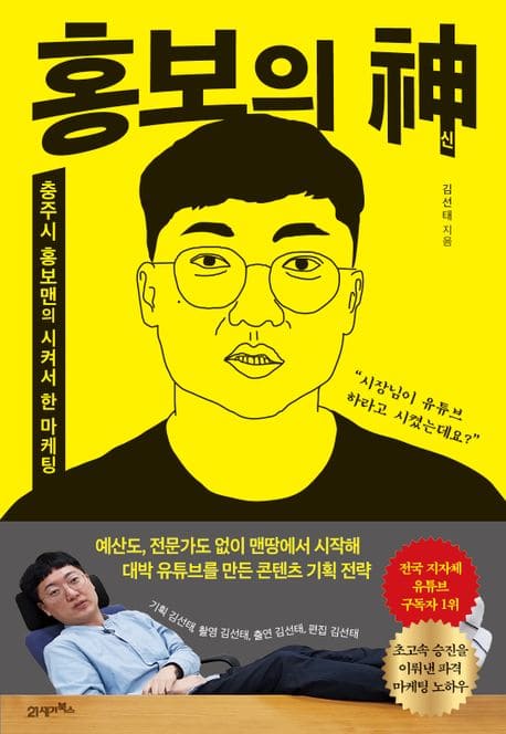요즘 충주시 유튜브가 핫하다. 이 유튜브 덕분에 충주시는 이제 많은 사람에게 친숙한 이름이 됐다. 최근에는 대통령이 충주시 유튜브 홍보를 혁신 사례로 언급해 화제가 되기도 했고, 수능에 충주시 관련 문제가 출제되기도 했다. 그런데 이 유튜브의 성공은 모두 ‘충주시 홍보맨’ 김선태 주무관 한 명의 기획에서 시작됐다. 『홍보의 신』은 충주시 홍보맨으로 잘 알려진 김선태 주무관이 시장님이 ‘시켜서’ 시작한 유튜브를 성공시키기까지의 경험을 바탕으로 깨달은 홍보의 핵심과 브랜딩 방법을 알려주는 책이다. ‘공무원 관짝 밈’, ‘홍보맨 슬릭백’ 등 큰 화제가 된 영상이 탄생한 과정과 그 속에 녹아 있는 홍보 전략을 이야기한다. 또한 기획부터 촬영, 출연, 편집까지 혼자 맡게 되면서 마주하는 실질적인 어려움과 이를 헤쳐 나가는 파격적이고 진솔한 경험이 담겨 있다. 이 책을 통해 근본 없지만 핵심을 꿰뚫는 충주시 홍보맨만의 홍보 비밀을 알 수 있을 것이다. 이왕 하는 것, 그래도 제대로 해야 하지 않겠습니까? 다른 지자체는 어떻게 유튜브를 운영하고 있는지 살펴보았습니다. 음. 저에게 도움이 되지는 않겠더군요. 결국 처음부터 끝까지 맨땅에서 부딪쳐보는 수밖에 없었습니다. 성공 전략을 세우고, 실행하고, 시행착오도 거치면서 저만의 확고한 홍보 전략이 쌓이는 것을 느낄 수 있었습니다.